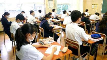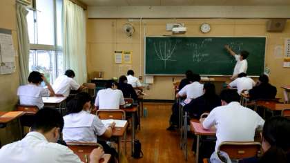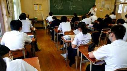 3年生数学科で関数のグラフを復習中。関数「y=ax²」のグラフを使った問題は高校入試の定番。完全マスターをめざし、先生の説明も力が入ります。「わかる」と「解ける」は大違い。ぜひ「解ける」ようになってくださいね。