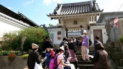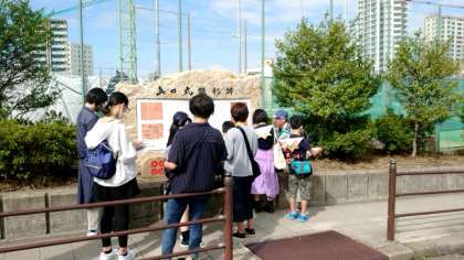 小学生から中・高校生まで、学年や世代を超えて、ふれあい・交流できるのがジュニアクラブの魅力です。今回は、幸村が築いた「真田丸」の顕彰碑(けんしょうひ)や「真田の抜け穴」が残る三光神社などを巡りました。知らなかった天王寺区のことを学ぶ機会になりましたね。
