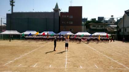 本日午後、体育大会の合同練習に取り組みました。体育大会にむけて初めて全学年揃って練習しました。雲一つない秋晴れの下、皆さん集中して頑張りました。