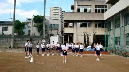 秋晴れの下、体育大会予行演習を行いました。プログラムに沿って各自の動きを確かめます。入場行進〜開会式では、皆さん気持ちを集中させて取り組めましたね。