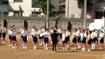 行進曲をはじめ、国歌・校歌を演奏します
