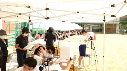 予行演習では、各係生徒の役割を実際に確かめます。どの種目でどの場所に集まり、どんなお仕事を担当するのか、担当の先生とともに取り組みました。
