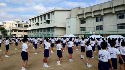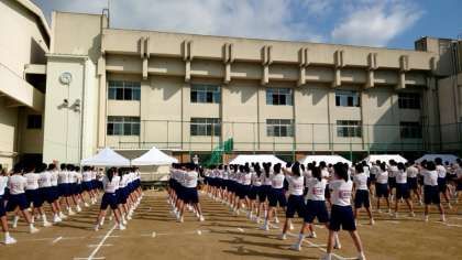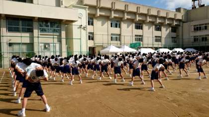 開会式後はプログラム1番「ラジオ体操」。指先までピンと伸ばした姿は力強く、集団の動きも上手く合っていて美しかったですよ。