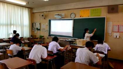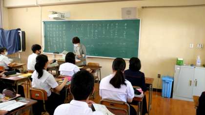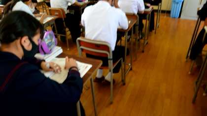 2年生国語科で少人数授業を行っています。今日は「助動詞」のはたらきを学びます。クラスを2分割し(文法が)得意な人・苦手な人に分かれて学習します。到達度に応じた学習がすすむよう、先生方の創意工夫を感じました。