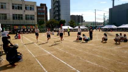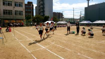 200m走男子の部です。学年が上がるにつれて迫力が増しますね。勢い余って転倒する場面もありハラハラします。ケガしないように気をつけてくださいね。