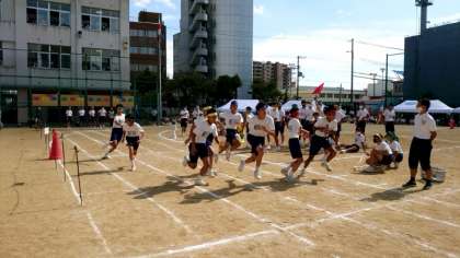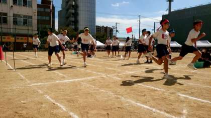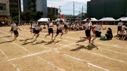 女子に続いて男子800mリレーがスタートしました。8人が100mずつバトンをつなぎ、ゴールをめざします。生徒席から選手への温かな応援の声が届いています!