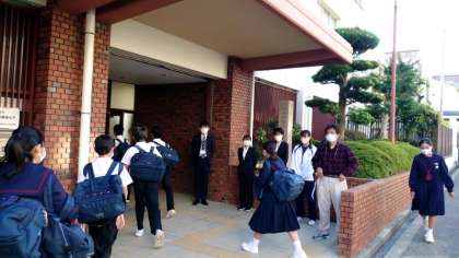 気持ち良い青空が広がる朝。今日も皆さん元気に登校しています。学習に運動に打ち込める絶好の日和。文化祭にむけた取り組みを含め、クラスメイトと協力して実り多い一日にしてくださいね。