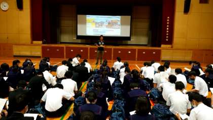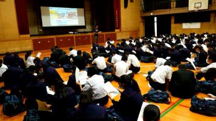 実力テストを終えた3年生が体育館に集まります。来月7日(土)に出発する長崎への修学旅行。先生から持ち物や行程について説明がありました。テストをやり遂げた後、楽しみにしているお話が聞けて良かったですね。