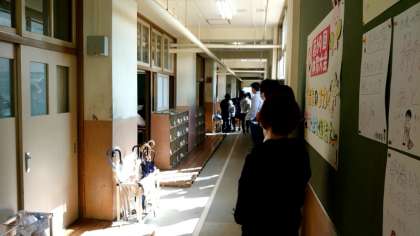廊下から授業のようすを見ておられます