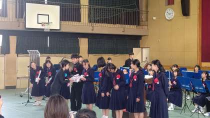 この第14回定期演奏会で3年生は引退となります。演奏会の中で『卒部式』も行われました。3年生の皆さんは今年度の難しい活動状況の中、立派に吹奏楽部を支えてくれましたね。吹奏楽部みんなの努力が音色となって表れていましたね。9名の3年生の皆さん、本当にお疲れ様でした。