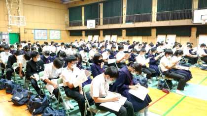 3年生修学旅行まであと3日。旅行のしおりも完成し、先日説明会が行われました。長崎方面を中心に平和学習・体験活動に取り組みます。仲間とともに素敵な思い出をたくさん作ってくださいね。