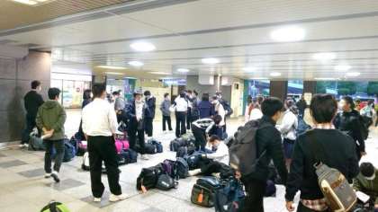 今日から九州・長崎方面へ修学旅行に向かいます。皆さん、新大阪駅に集まってきています。