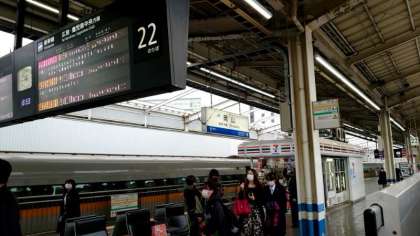 岡山駅に到着しました。曇り空ですが雨は降っていない模様です。