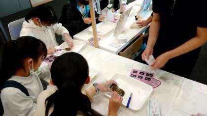 真珠を傷つけないよう、慎重にナイフを入れます。