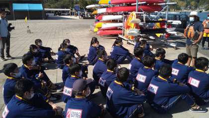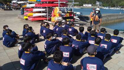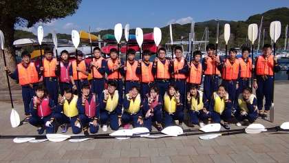 シーカヤック体験のレクチャーを受けます。