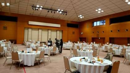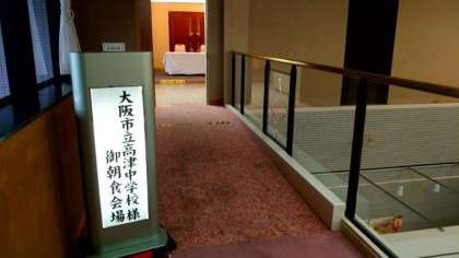 朝食会場です。係生徒の皆さんが誘導してくれています。
