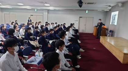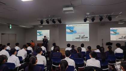 大刀洗平和記念館で、1・2組はホールで特攻の歴史を学びます。