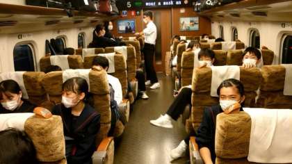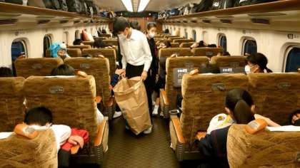 下車まであと20分。美化委員さんがおやつのゴミを回収中。