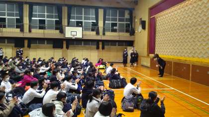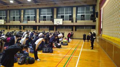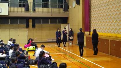 お世話になった添乗員さんにも感謝の気持ちを込めて、生徒代表がお礼のことばを伝えました。体育館に温かい拍手が響き渡りましたね。添乗員さんありがとうございました。