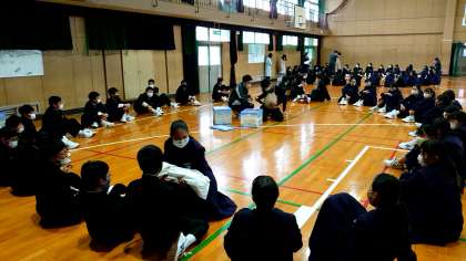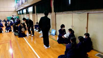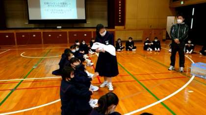 各クラスに「赤ちゃんのお人形」と「妊婦体験セット(お腹に巻く重り)」が渡されました。お人形を抱っこしたり、重りをお腹に巻きつけて歩いてみたり、それぞれ交代しながら体験しました。お家の方(お母さん)のご苦労を感じることができましたか?