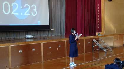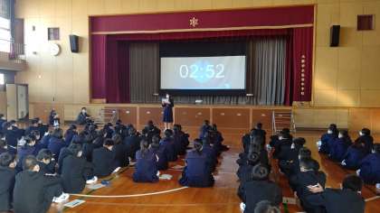 5・6時間目に1年生の取組で「ビブリオバトル」を行いました。各学級の代表が本の紹介をします。3分という限られた時間の中で、何ページにもわたる本の内容を分かりやすくまとめ伝えてくれました。それぞれの代表の皆さんの感想も述べれれていて素晴らしい紹介が進んでいましたね。