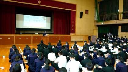 2年生の皆さんが、将来のキャリア形成にむけた学習に取り組んでいます。今日は「まわりの方から教わったお仕事」についての発表会。各クラスより選出された代表が、いろんなお仕事を紹介します。