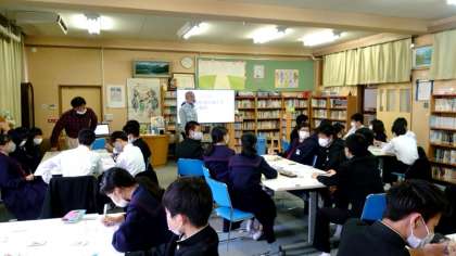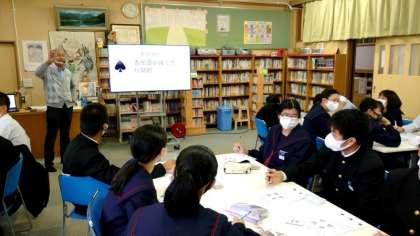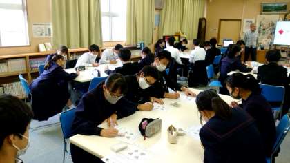 SPカードを使った個性・特性診断が続きます。「おだやか」や「怒りっぽい」など自分の性格を示すカードを10枚選び、ゲストティーチャーから選んだカードについて説明がしていただきます。「努力家」や「高いリーダーシップ」などの説明があるたびに皆さんから歓声があがります。