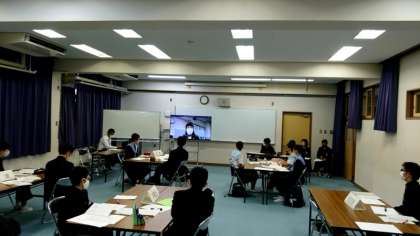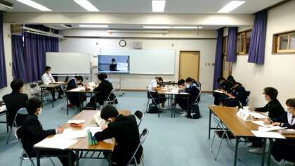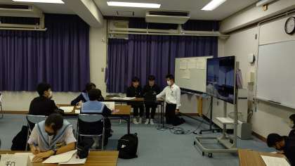 21日(土)の土曜授業のあと、生徒会交流会が行われました。高津中学校、桃谷中学校、田島中学校の3会場をオンラインでつなぎ、各校の発表・討議が行われました。発表、司会進行と生徒会役員の皆さんお疲れ様でした。