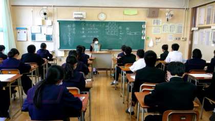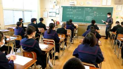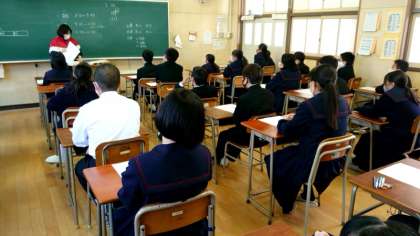 2時間目「英語」のテストがまもなく始まります。1年生の教室では皆さん静かに開始のチャイムを待っています。リスニングテストも実施されます。時間配分に注意して1問ずつ着実に解いていきましょう。
