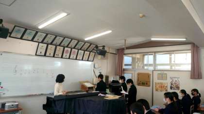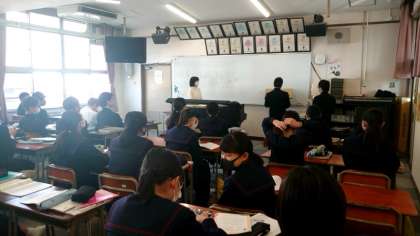 1年生音楽科でリコーダーを吹いています。今日は「聖者の行進」を練習します。アメリカ南部で生まれたディキシーランド・ジャズの代表曲。耳馴染みのあるメロディーなので皆さん吹きやすそうですね。