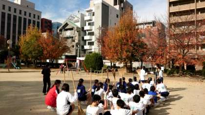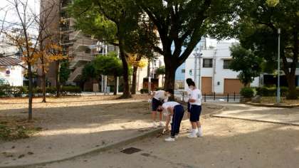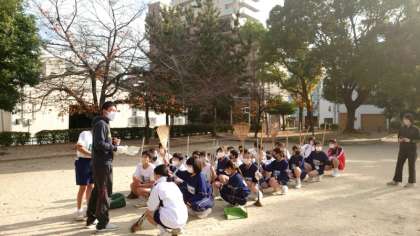 クラス毎にわかれて、校区内の公園(7か所)を清掃します。今日は小春日和。気持ちよく清掃できそうです。