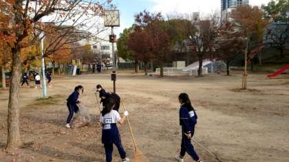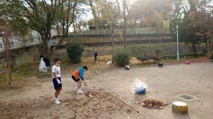 各クラスともに、皆さん協力し合って清掃に励んでいます。みるみるうちに満タンのごみ袋が積みあがります。