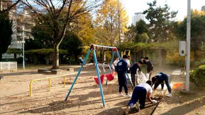 東高津公園でも地域の方が清掃に協力してくださいました。日頃地域の方とふれあう機会が少ない中、貴重な体験となりました。