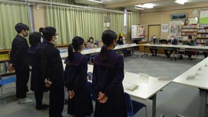 生徒会長さんから学校や取組の報告を行っています