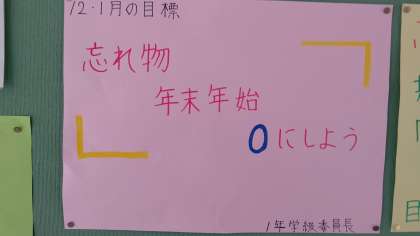 1年生の学年目標です 忘れ物0(ゼロ)続けましょうね