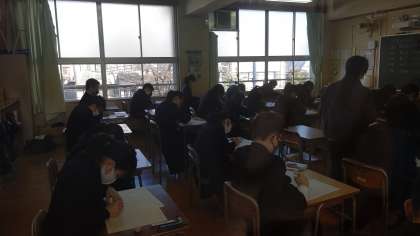私学入試まであと1ヶ月となりました。今日、3年生実力テストが国語・英語・数学・社会・理科の順で行われています。これまでの成果を発揮してくださいね。本番の入試に向けて、皆さん真剣に取り組んでいます。