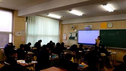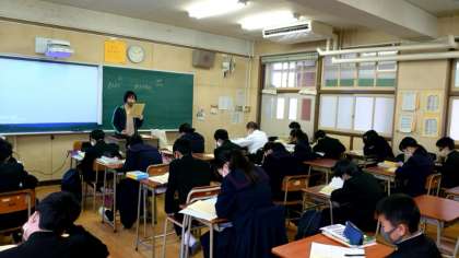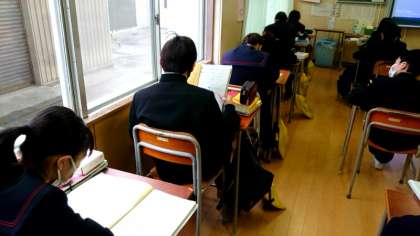 1年生英語科で不規則動詞を学習中。「原形→過去形→過去分詞」と変化する際に「ed」をつけない動詞を不規則動詞と呼ぶそうです。先生から配られた一覧表を確かめながら、皆さん頑張って覚えています。
