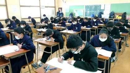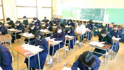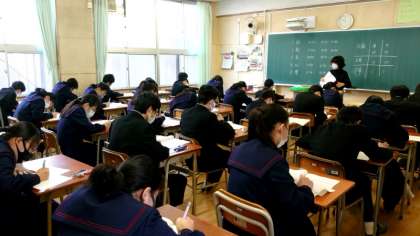1年生の皆さんが「数学」のチャレンジテストに臨んでいます。マークシート形式の回答もあるので記入ミスには要注意。時間はたっぷりあるので落ち着いて解きすすめましょう。