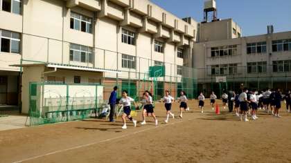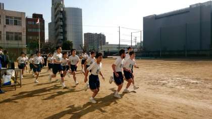 1年生体育科で長距離走に取り組みます。長距離走は今がベストシーズン。今日は「12分間走」にチャレンジします。男女とも2グループに分かれ、いざスタート!クラスメイトの声援を受け、皆さん軽快にグラウンドを駆け抜けていました。