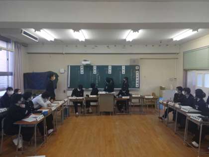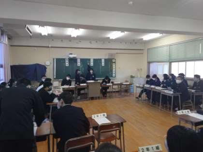 2月の学校目標をみんなで話し合います。今の課題を出し合い、鬼や豆をイメージして、いい目標を考えました。また、更衣調整期間について、より過ごしやすくするにはどうすればいいのか、意見を出し合いました。