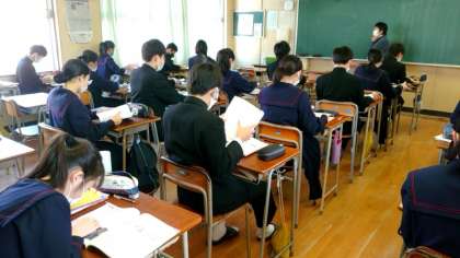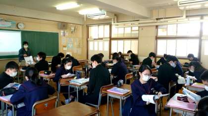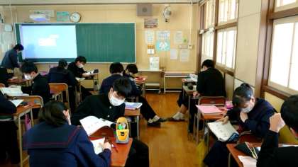 3年生英語科で単元のおさらい中。お互いに教科書の英文を読みあい、内容や表現、発音を確認します。来週スタートする学年末テストの2日目(火曜日)が英語のテスト。わからない点があれば先生に質問してくださいね。