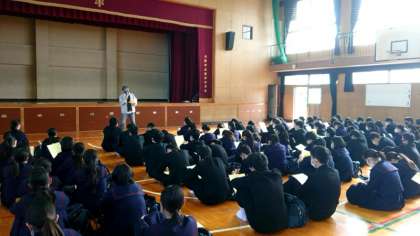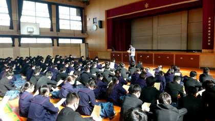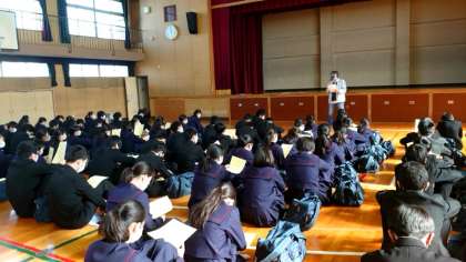 学年末テスト後、私立高校入試の願書出願説明会を行いました。進路指導主事の先生から出願の流れや注意点が記されたプリントが配られ、出願時の留意事項を説明してくださいました。高校によって締切日が異なるため、明日・明後日の2日にわかれて出願を行います。出願に関して不明な点や質問があれば中学校までご連絡ください。