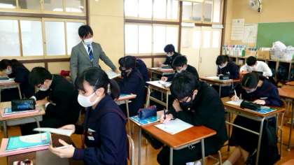 3年生英語科で入試対策学習に取り組みます。今日は入試でよく出る「連語」の復習。「look for〜(〜を探す)」や「a lot of〜(たくさんの〜)」など、たくさんありますね。今週末は奈良県の私学入試。皆さん最後まで頑張ってください!