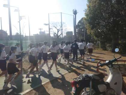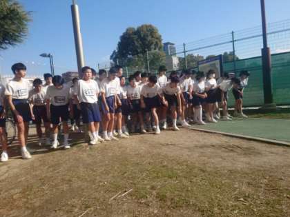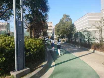 いつもは学校の運動場で練習をしてきましたが、今日はのびのび走れます。皆さん、思う存分、走ってくださいね。スタートに並んでいる姿から気合が感じられます。1、2時間目は2年生が、3、4時間目は1年生で「真田山公園杯」が行われます。