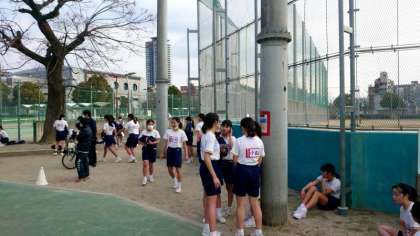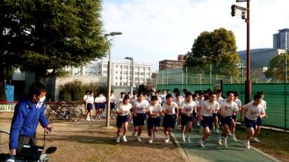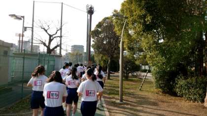 先生の合図で一斉にスタートしました。ふだん走っている学校の運動場(1周約150m)と違ってスピードも出しやすそうです。自己ベスト更新をねらってください。