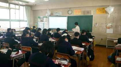 2年生社会科で「歴史:近世」の復習が行われています。プリントをもとに、近世に活躍した人物やできごとを再確認。日本だけでなく大航海時代など世界史との関わりも加わって難しいですね。さまざまな人物・語句をすっきりと整理させましょう。