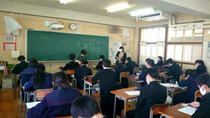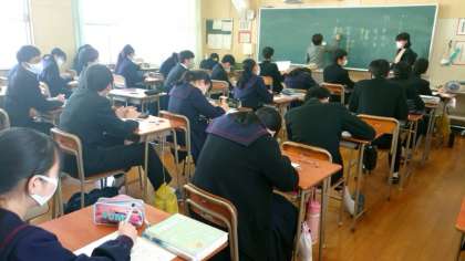 3年生国語科で「文法」のおさらい中。文法の問題はポイントを押さえれば比較的得点しやすいですね。明日の入試にむけて先生方の指導も熱が入っています。