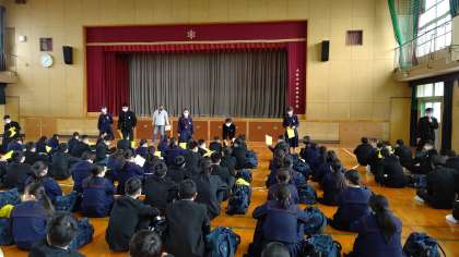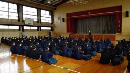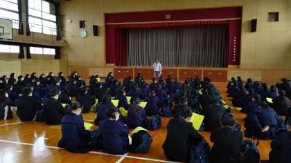 3年生は5、6時間目に「私学事前指導」が体育館で行われています。最初に校長先生から激励のお話がありました。持ち物・準備物の確認の大切さや、焦らないことのお話がありましたね。その後、進路指導主事の先生や学年の先生方からそれぞれ最終確認が行われています。