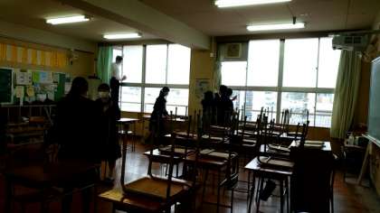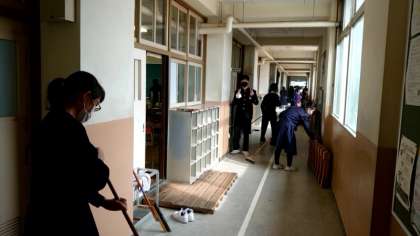 受験の疲れも見せず、3年生の皆さんも掃除に励んでいます。卒業式まであと1ヵ月。この校舎で過ごすのもあと少しですね。