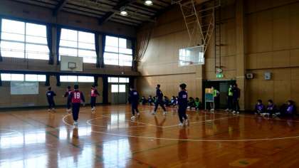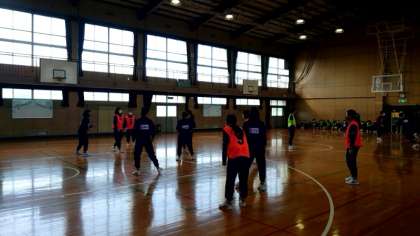 友だちの温かい声援の下、女子が試合中